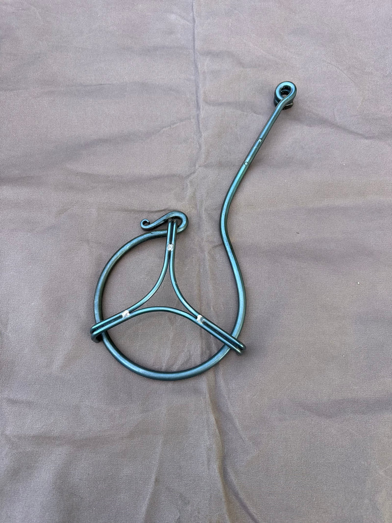 Made with 10mm mild steel and oil quenched. Comes with detachable trivet. For holding skillets, Frying pans