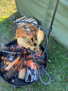 This is the Spit Roast attachment arm for the large fire anchors and is capable of holding a large chicken. Simply skew the meat, it has 4 lock in positions and you can easily adjust the height.