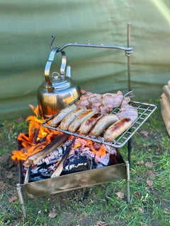 I've turned the grill, so it looks upside down to allow for smaller items (sausages) not to roll off into the fire.